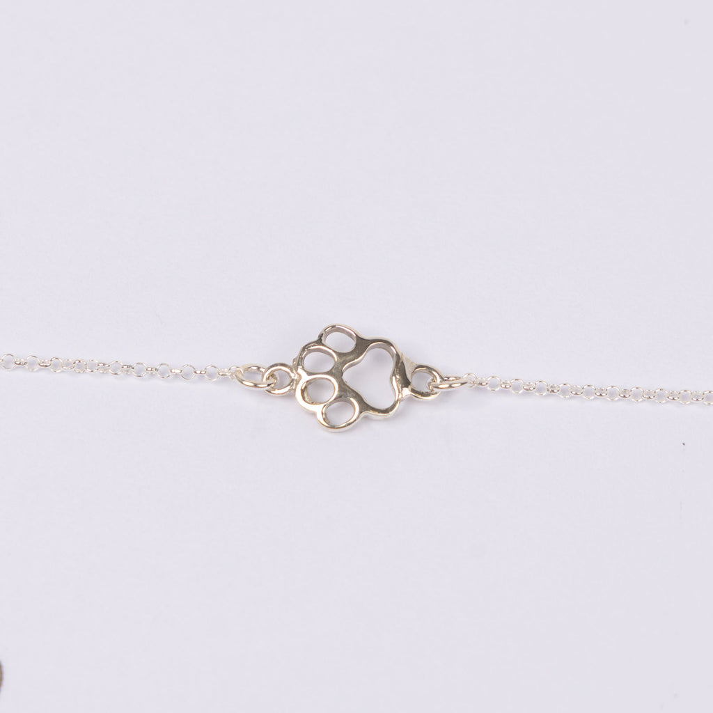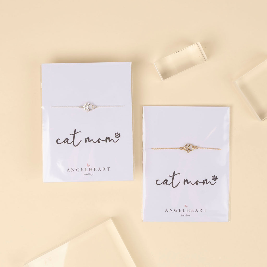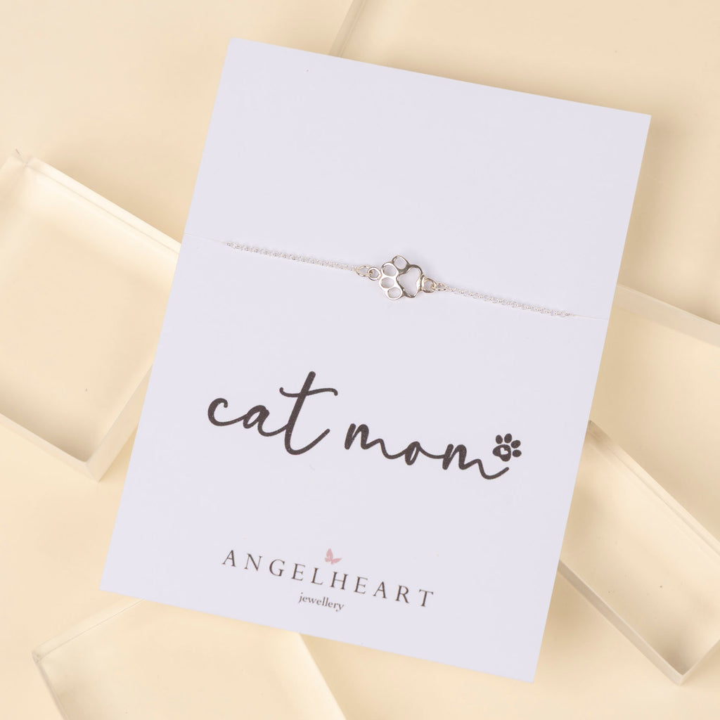 "Cat Mom" Paw Print Bracelet (sterling silver or gold-dipped)