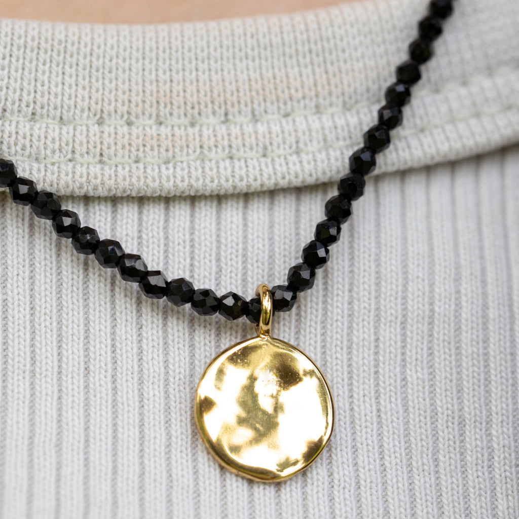 "Centred" Hammered Gold Disc Pendant with Back Spinel Chain