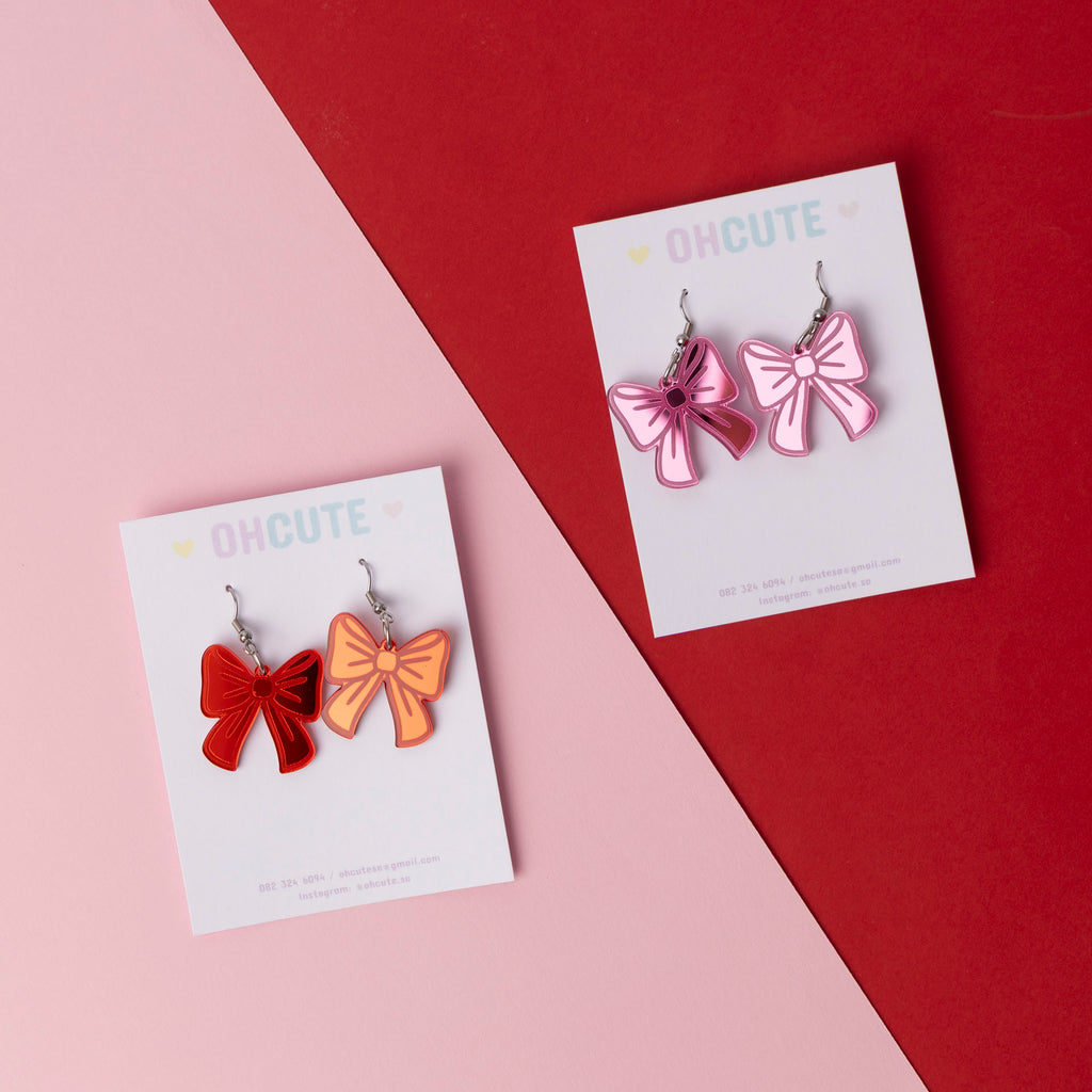 Christmas Bows Acrylic Novelty Earrings (Pink or Red)
