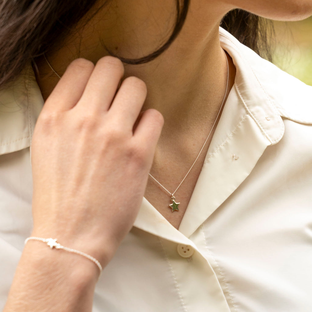 Handcrafted in South Africa by Caera O’Shaughnessy for Angelheart Jewellery, this beautiful piece features a delicate solid sterling silver star — a symbol of love, guidance, and the special bond between parent and child. Available as either a necklace or bracelet, it’s a heartfelt keepsake she’ll treasure for years to come.