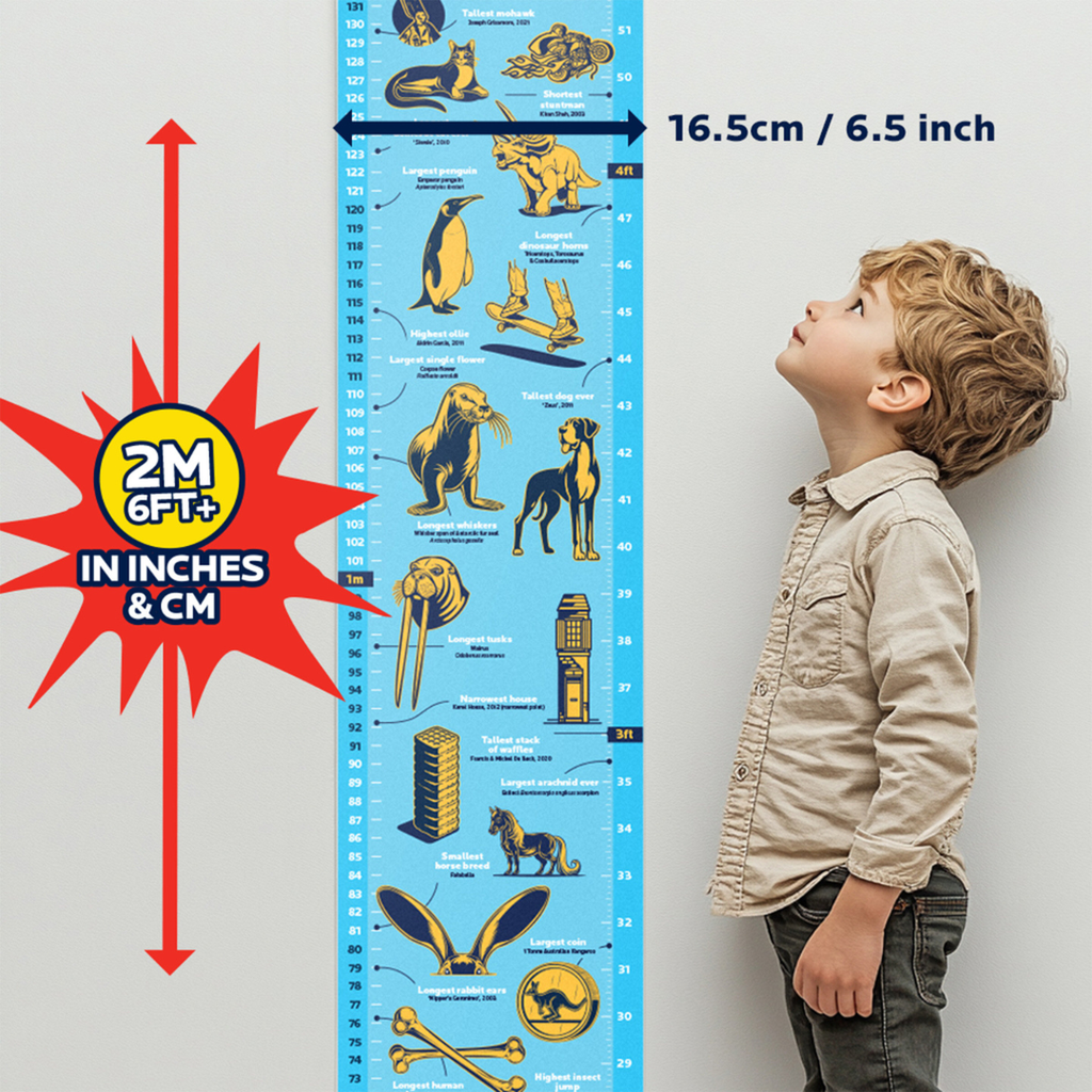 This isn’t just a height chart — it’s a mind-blowing, fact-packed journey through the wild world of Guinness World Records. Every time they shoot up another centimetre, they’ll discover something extraordinary — from the world’s tallest humans to the tiniest horses. Suddenly, “Stand up straight!” becomes the most exciting sentence in the house.