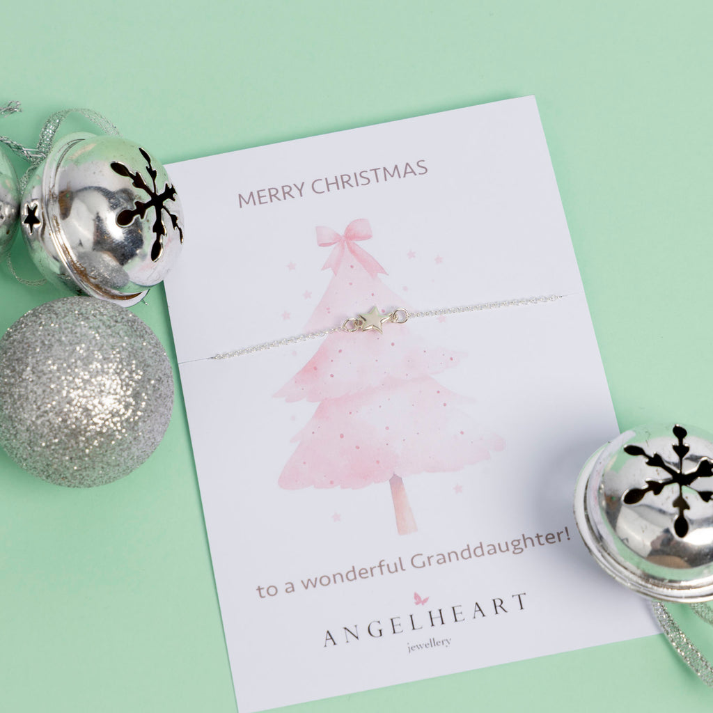Handcrafted in South Africa by Caera O’Shaughnessy for Angelheart Jewellery, this dainty sterling silver star is a sweet reminder of how special she is — a symbol of love, light, and the joy she brings to your world. Available as either a necklace or bracelet, it’s a heartfelt keepsake she’ll treasure every Christmas and beyond.