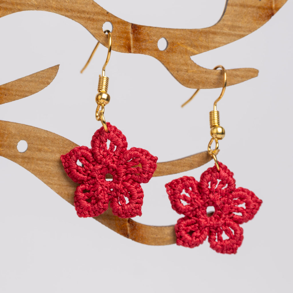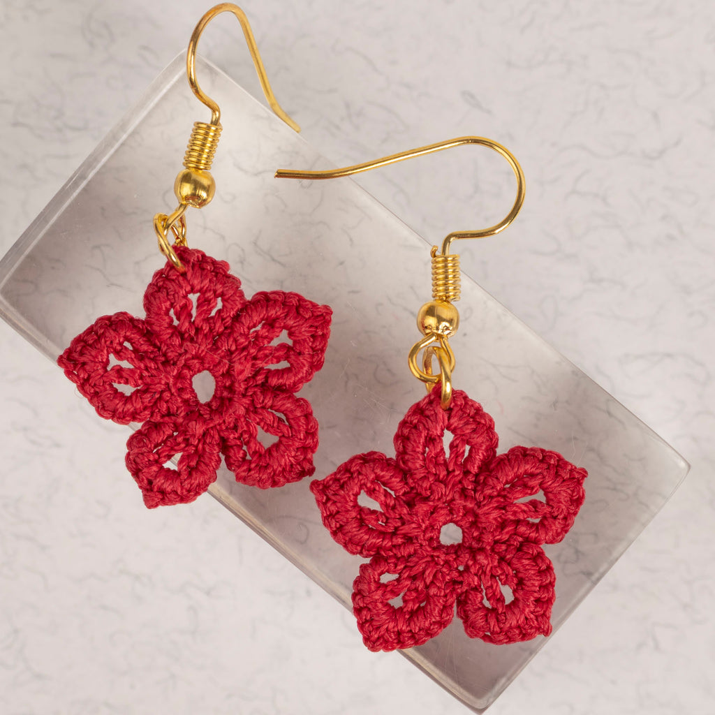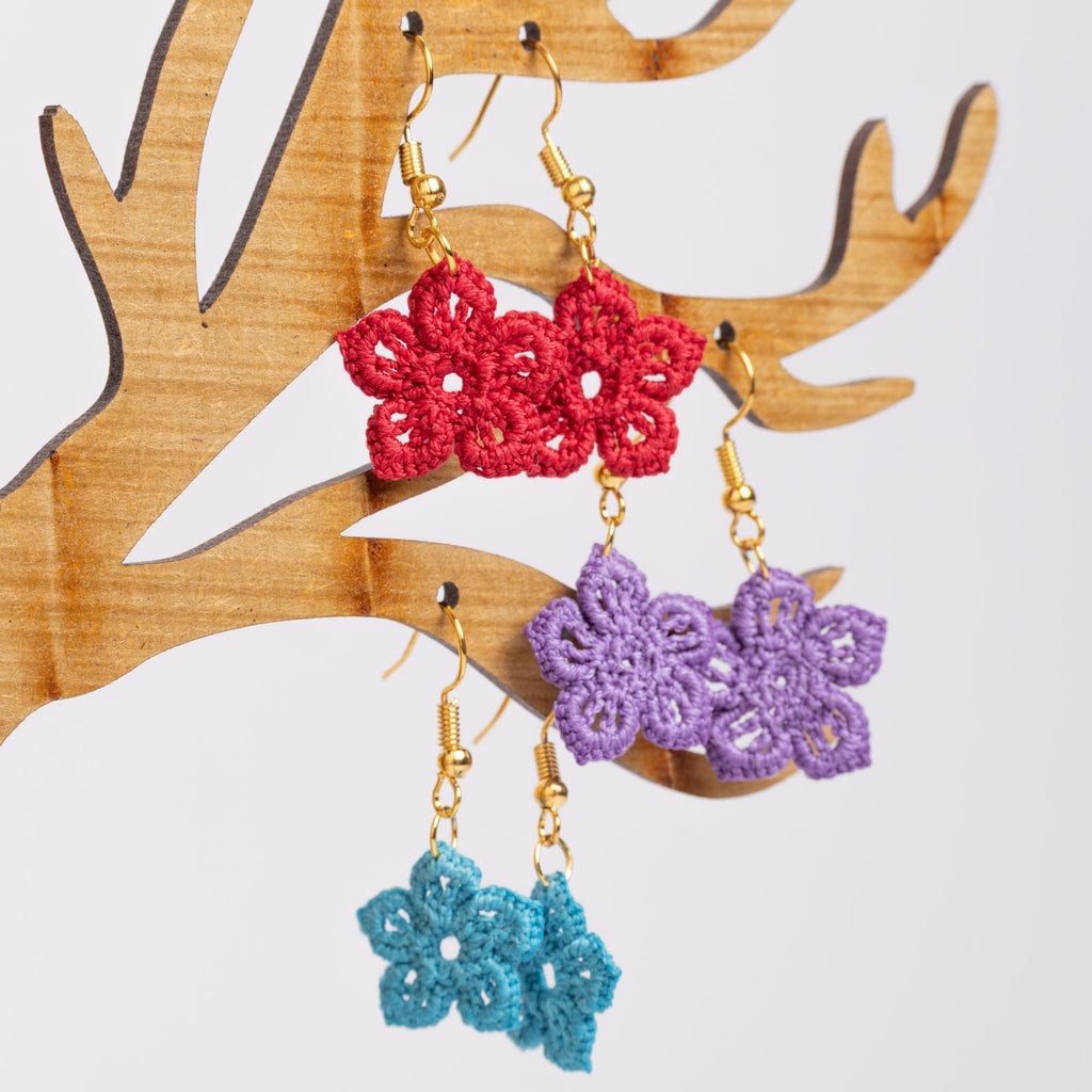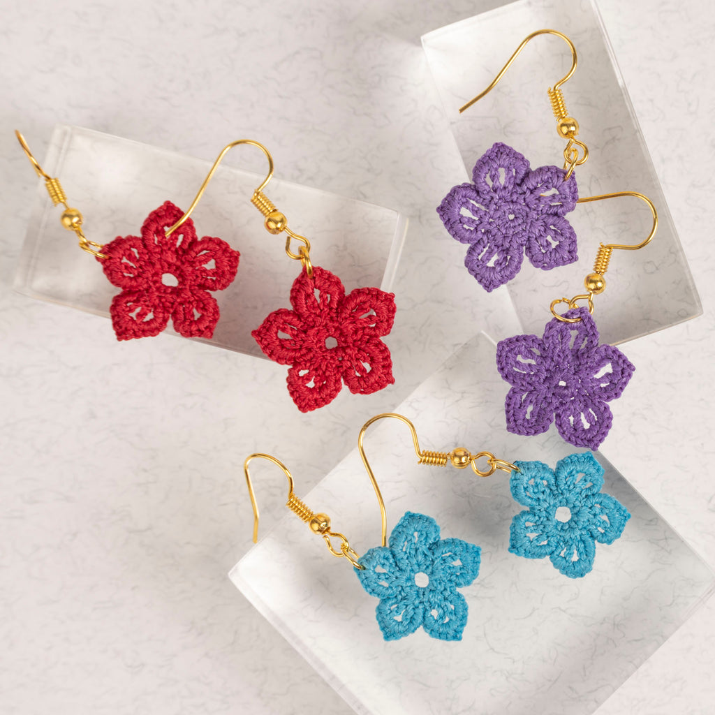 Micro Crochet Flower Dangle Earrings (assorted colours)