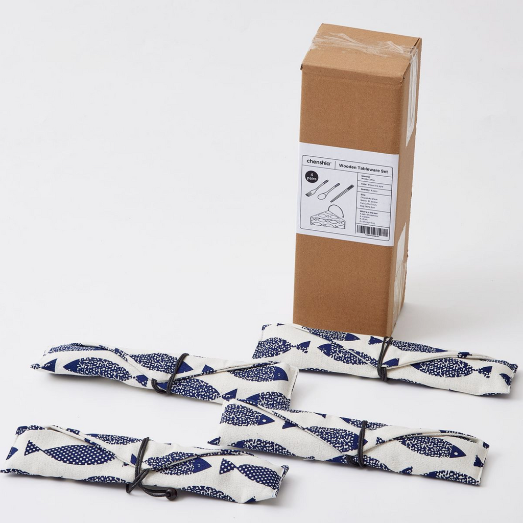 Natural Wood Travel Cutlery Set (4 sets / 16pc)
