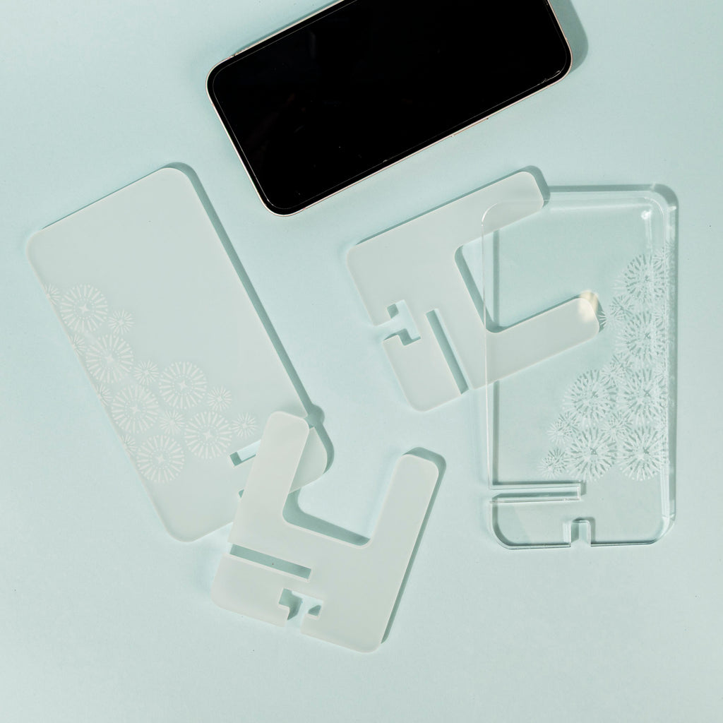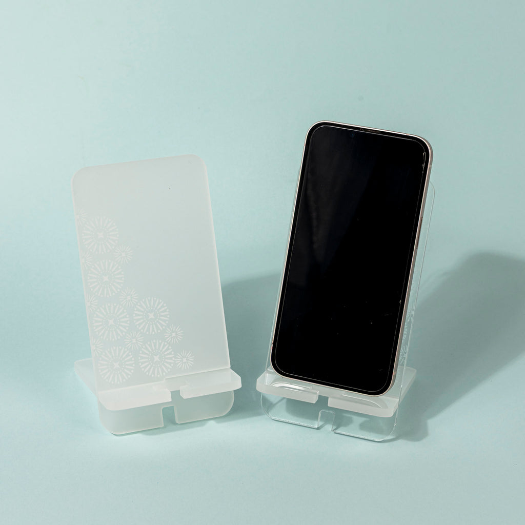 Featuring an intricate Shweshwe-inspired design, these clear and frosted perspex stands add a stylish local twist to your desk, bedside table, or kitchen counter. Perfect for video calls, hands-free viewing, or simply showing off your South African flair!