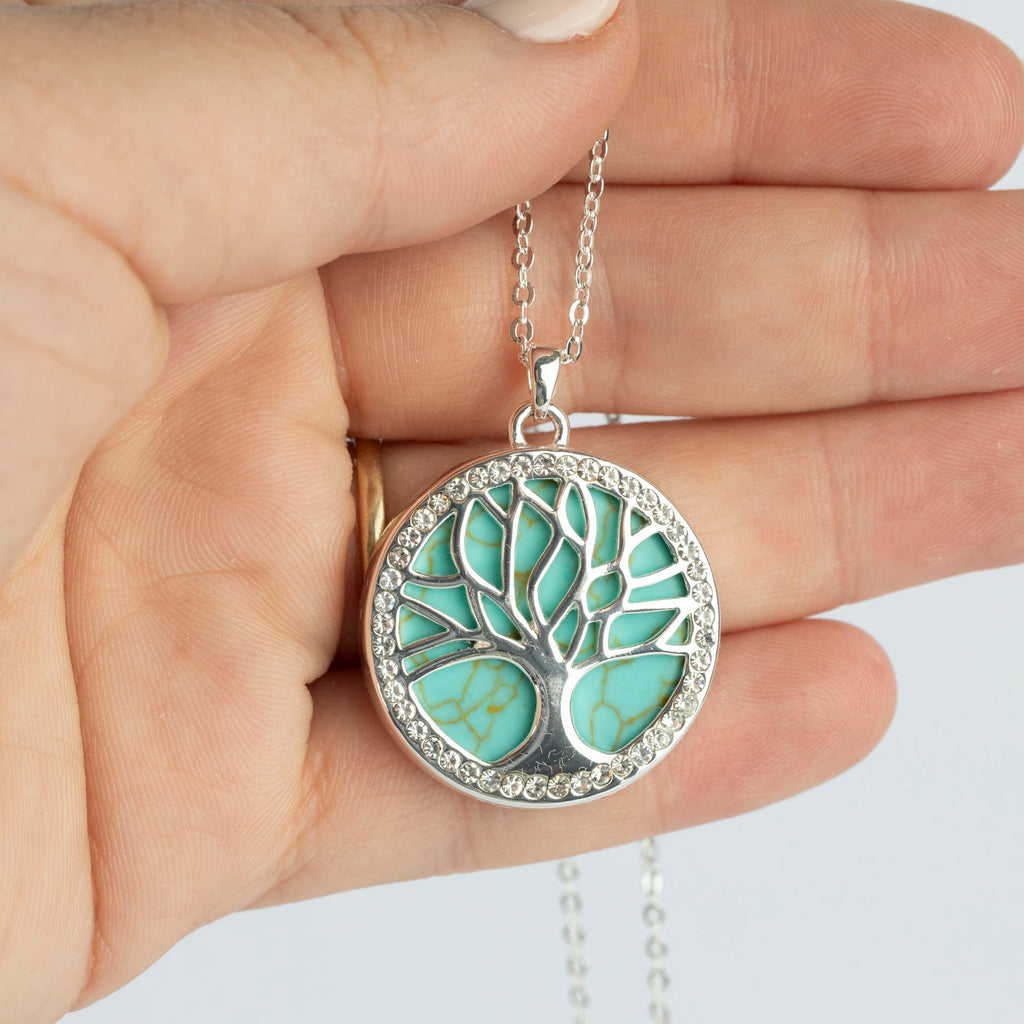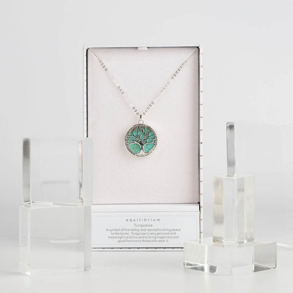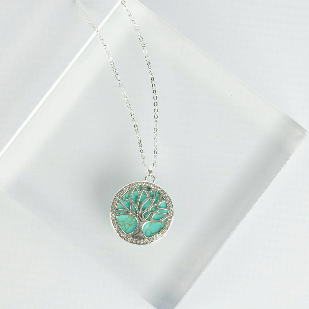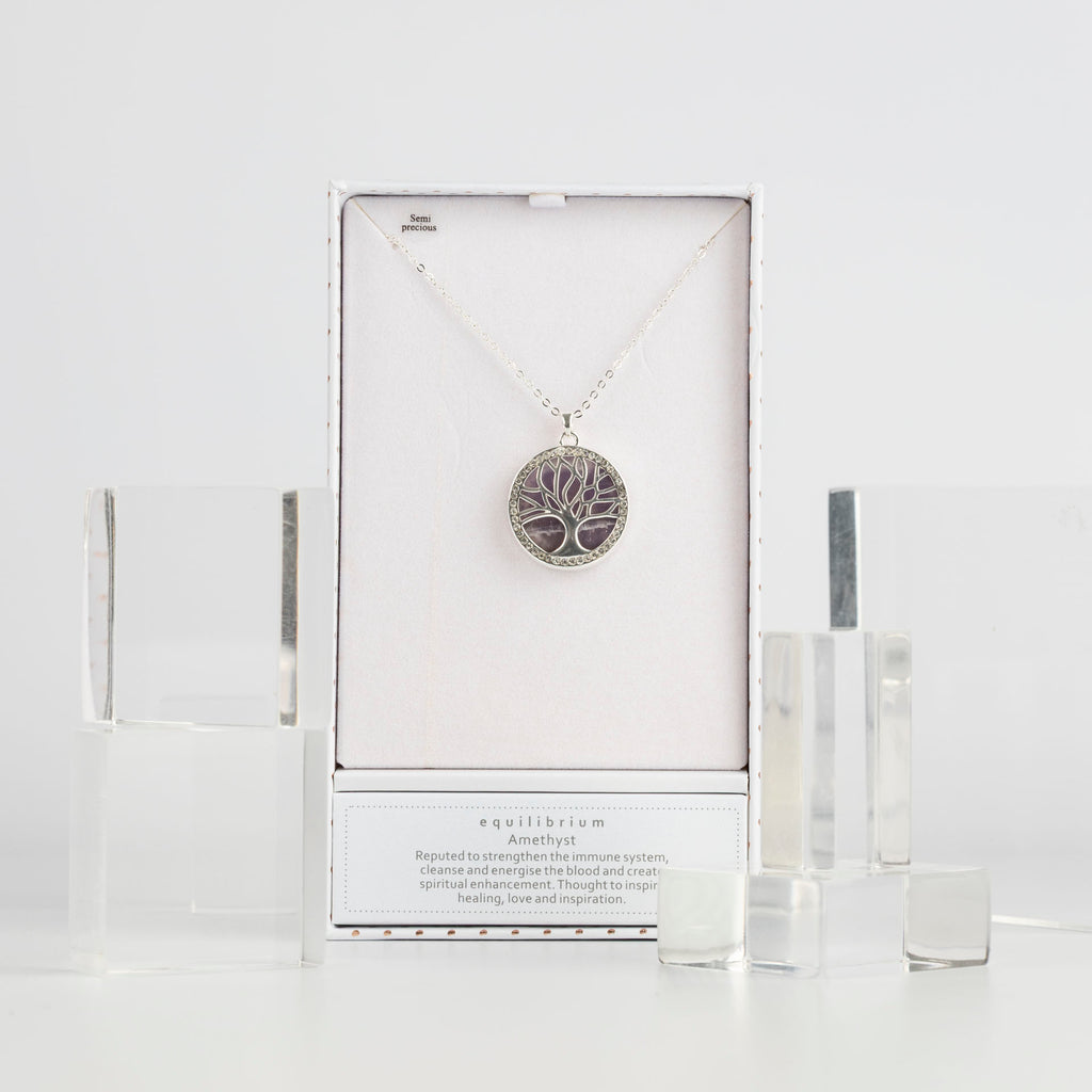 Tree of Life Semi-Precious Gemstone Necklace (Amethyst or Turquoise)